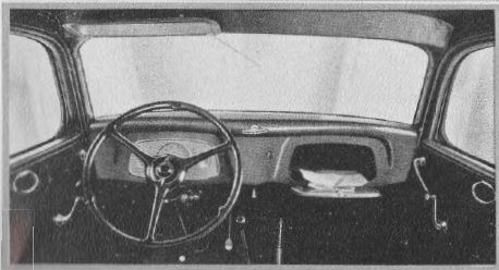 Left-The driver’s compartment is roomy, comfortable and convenient. The comfortable bucket seals are attractively upholstered to match all other interior trim. Driver’s seat is fully adjustable. Large cowl ventilator, sun visor, insulated dash and jute pad beneath floor mat assure driver comfort.
