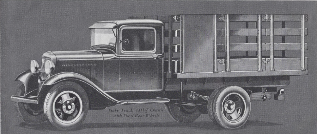 The double-channel, double-drop, X-section frame provides a measure of chassis stability and strength never before attained in the commercial car. Low center of gravity is combined with large body capacity. The rigid, inflexible foundation provided by this frame reduces body stresses to a new minimum.